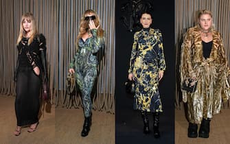 Parata di look travolgenti per le star ospiti del fashion show di Roberto Cavalli. Da sinistra, posano: Victoria De Angelis, Myss Keta, Giulia Salemi e Big Mama