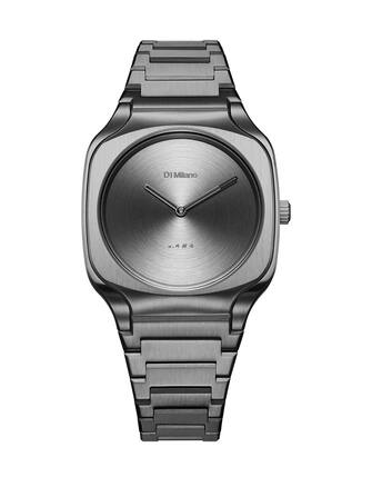 D1 MILANO - SQUARE 37 mm, cassa quadrata, quadrante minimalista e spazzolatura circolare che cattura la luce. La lancetta dei minuti, nera o bianca, ne sottolinea l’eleganza