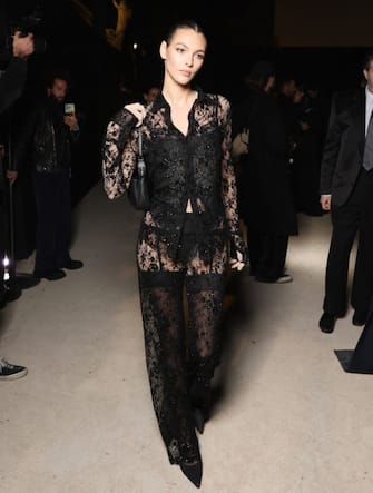 Lingerie e reggicalze in primo piano anche per Vittoria Ceretti. Alla top model italiana è toccato uno dei look della S/S 2025 col pizzo impreziosito da ricami pregiati