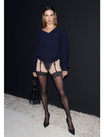 Alessandra Ambrosio ha indossato un look della Spring/Summer 2025, un outfit con body e reggicalze in trompe l'oeil. La lingerie è solo un'illusione