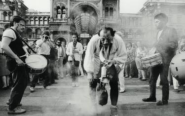 Dal pianista Maurizio Pollini, fotografato dall'alto del lampadario della sala del Piermarini, a Goffredo Petrassi che osserva da un palco di proscenio uno sfocato Riccardo Muti sul podio dell'Orchestra della Scala, fino alla Compagnie Lubat in piazza Duomo a Milano, ottanta scatti in bianco e nero realizzati dalla coppia composta da Silvia Lelli e Roberto Masotti