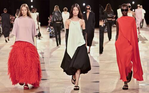 Per Piccioli, che è un'osservatore attento dell'attualità, sensibile come pochi ai risvolti sociali di un mestiere che lui concepisce come niente affatto separato dal mondo reale, la moda oggi più che mai deve parlare alle persone vere, quelle dal cuore pulsante. La sfilata, che si svolge sulle note di In This Heart di Sinéad O'Connor, include il denim (caro a Demna con cui lo scorso luglio c'è stato un passaggio di consegne con abbraccio) e bomber lavorati finemente che riflettono il gusto peculiare che Piccioli ha sviluppato negli anni