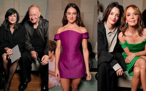 Alcuni volti del front-row di Balenciaga: Kristin Scott-Thomas, la brand ambassador Isabelle Huppert, la top model italiana Vittoria Ceretti e Anna Wintour che non di rado a Parigi si fa accompagnare alle sfilate da Baz Luhrmann
