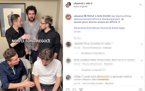 UfoZero2, duo comico napoletano nato nel 2020 e composto da Luca Sciarrillo e Alessio Colucci, sarà tra i partecipanti della prossima stagione dello show. Parteciperà alla sfida a colpi di battute e gag per mantenere la serietà. La presenza di UfoZero2 promette momenti di comicità imprevedibile. Nella foto, vediamo un frame di un video condiviso poco fa dal duo comico per annunciare la propria presenza a LOL: Chi ride è fuori