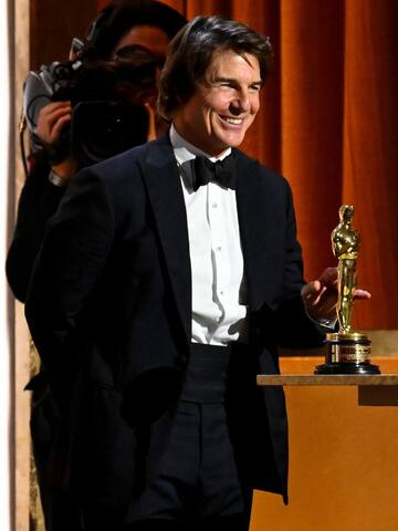 Tom Cruise non ha sfilato sul tappeto rosso con le altre star ma è stato protagonista sul palco dove ha ritirato l'Oscar onorario. L'icona del grande schermo ha optato per uno dei grandi classici del suo guardaroba: lo smoking sartoriale Made in Italy col papillon (di Brioni).