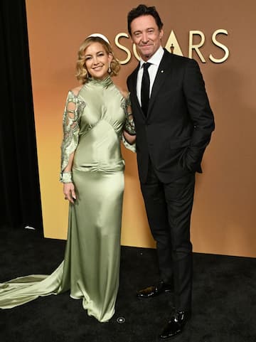 In gran spolvero Kate Hudson e Hugh Jackman, una delle coppie cinematografiche dell'anno con Song Sung Blue. Lei, in verde salvia, look di Valentino by Alessandro Michele dalla collezione "Fireflies", lui in total look Zegna.