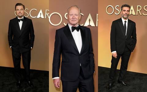 Più formali, invece, Leonardo DiCaprio (in Dior), Stellan Skarsgård (in Zegna) e Oscar Isaac (in Louis Vuitton). Look impeccabili per rappresentare alcuni dei film più acclamati della stagione, rispettivamente: Una battaglia dopo l'altra, Sentimental Value e Frankenstein.