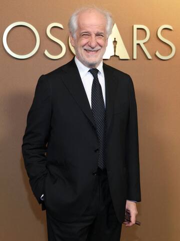 Tra gli uomini sul red carpet si distingue anche Toni Servillo, rappresentante del cinema italiano con La Grazia di Paolo Sorrentino. Per lui abito classico sartoriale scuro e cravatta in tinta con micro pois.