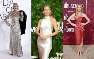 IL DRESS DI SETA - Kate Hudson è chic e seducente con l'abito di seta scivolato con la scollatura all'americana e il fiocco che accarezza la schiena nuda. Gli accessori? Orecchini lunghi, come quelli della star di Hollywood. Il total white a Capodanno è sempre una buona idea.