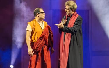 Dopo lo straordinario debutto nella stagione 2024/2025, dove “Din Don Down” ha raccolto fin da subito un inaspettato successo nel pubblico, oggi lo spettacolo ha raggiunto numeri impensabili, risultando uno dei più grandi successi teatrali degli ultimi anni. Più che uno spettacolo “DIN DON DOWN – Alla ricerca di (D)io” è una vera e propria esperienza da vivere e da cui lasciarsi trasportare. Un happening comico che sovverte il senso più profondo di ciò che ci ostiniamo a definire “normale” e che, attraverso un perfetto mix di comicità, tenerezza e disobbedienza, esplora il senso della spiritualità e della vita.