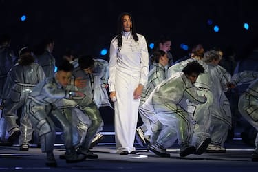 Vestito di bianco, solo al centro dello stadio. Ghali si ferma davanti a ottantamila persone e recita “Promemoria”, la poesia di Gianni Rodari. Non c’è musica, solo il suono della voce. Il rapper scandisce i versi in tre lingue: italiano, francese e inglese. Attorno a lui, un gruppo di ragazzi sotto i vent'anni si muove in sincrono. I loro corpi si incastrano fino a formare una colomba gigante. È il rito della tregua olimpica: l'impegno a fermare le armi finché durano i Giochi.