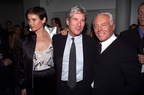 La reputazione a livello internazionale subisce una svolta decisiva nel 1980, anno in cui Armani contribuisce al film di culto American Gigolo producendo l’intero guardaroba del suo personaggio principale Richard Gere (nella foto con la moglie)