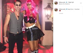 Parrucca rosa e look sexy per Elisabetta Canalis con il marito Brian Perri, vestito da emo, per l’edizione 2018 di Halloween. (Foto: Instagram)