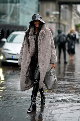Continua anche la moda del bucket hat. Scegliete la versione impermeabile en pendant con il resto del look e l'outfit sarà perfetto