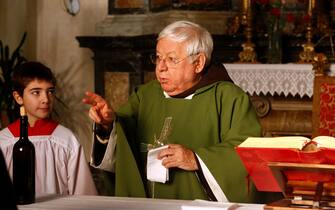 Paolo Villaggio nel ruolo di Don Abbondio in una scena di " Renzo e Lucia " , il film tv di Francesca Archibugi