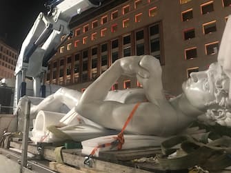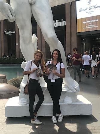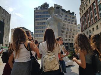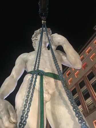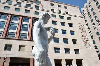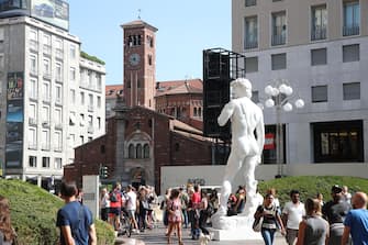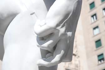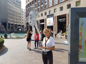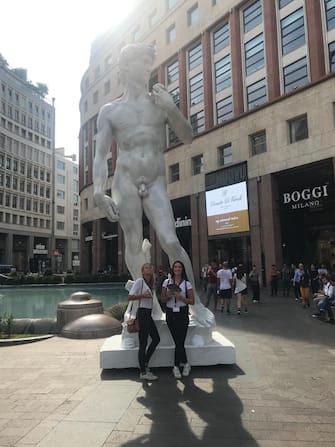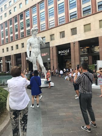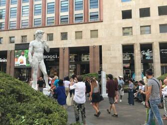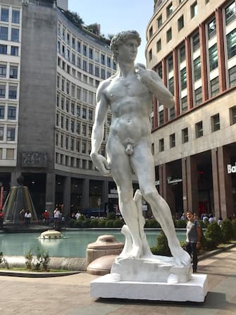 Una copia del David di Michelangelo in Piazza San Babila a Milano