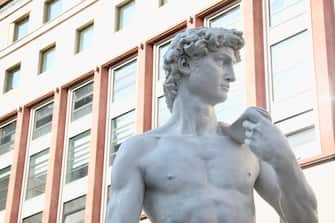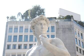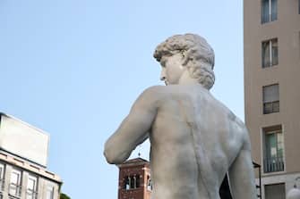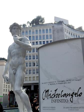 Il David di Michelangelo è approdato a piazza San Babila a Milano. Non si tratta di una cessione da parte della Galleria dell'Accademia di Firenze, dove il capolavoro originale si trova tutt'ora, ma di una fedele riproduzione a grandezza naturale realizzata in vetroresina e polvere di marmo, alta oltre 4 metri e con un peso di oltre 400 chili, ad opera degli Studi d'Arte Cave Michelangelo di Carrara, nel pieno rispetto delle proporzioni dell'originale marmoreo. La statua è stata posta nel cuore di Milano per promuovere il nuovo film d'arte Sky «Michelangelo - Infinito» al cinema dal 27 settembre al 3 ottobre.