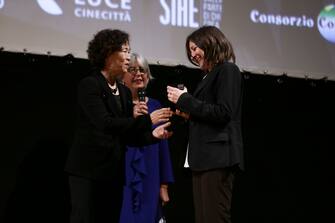 Anastasia Plazzotta ritira il Black Panther Award per il miglior film a Border - Foto di Moris Puccio