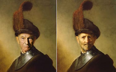 Patrick Stewart, in Un Uomo Anziano in un Costume Militare, olio su tavola di Rembrandt