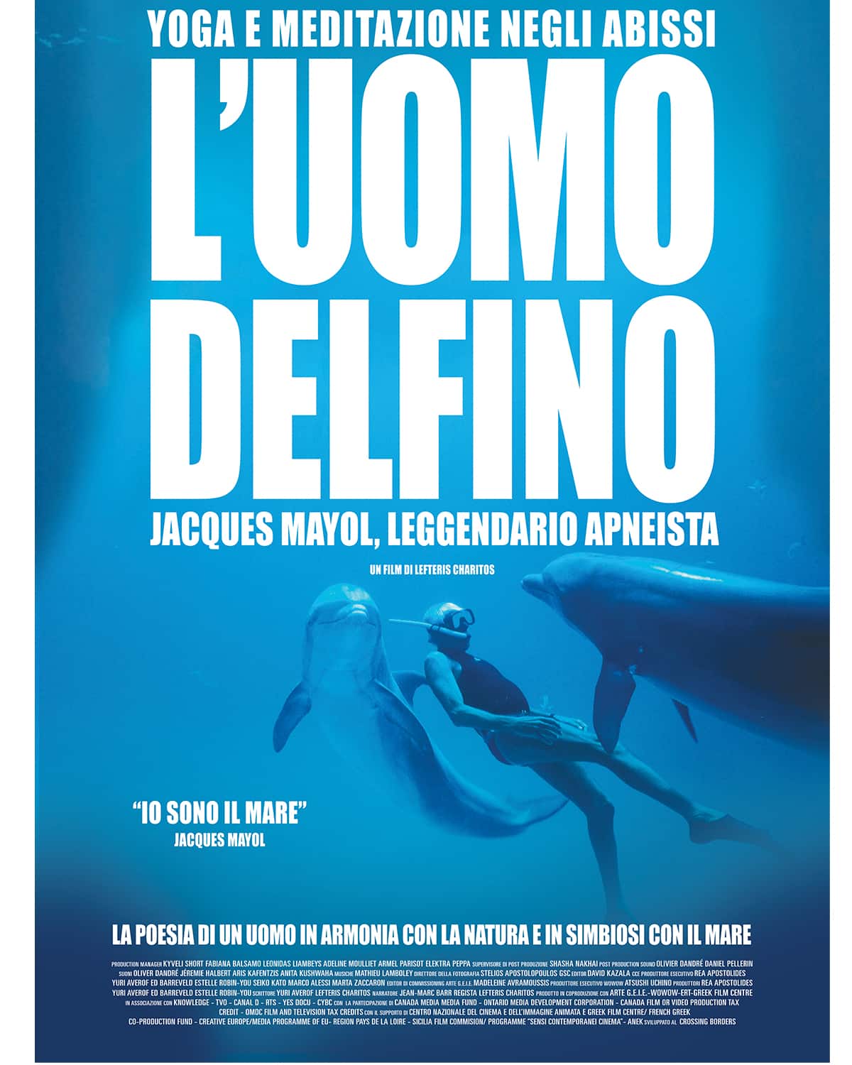 Narrato da Jean-Marc Barr, l'attore che ha interpretato il ruolo di Mayol nel film The Big Blue, il film intreccia una straordinaria fotografia subacquea contemporanea ai filmati d’archivio dagli anni Cinquanta in avanti, per svelare come ‘l'uomo dei delfini’ abbia rivoluzionato il mondo delle immersioni e donato nuova consapevolezza al rapporto umano con la natura e la propria interiorità