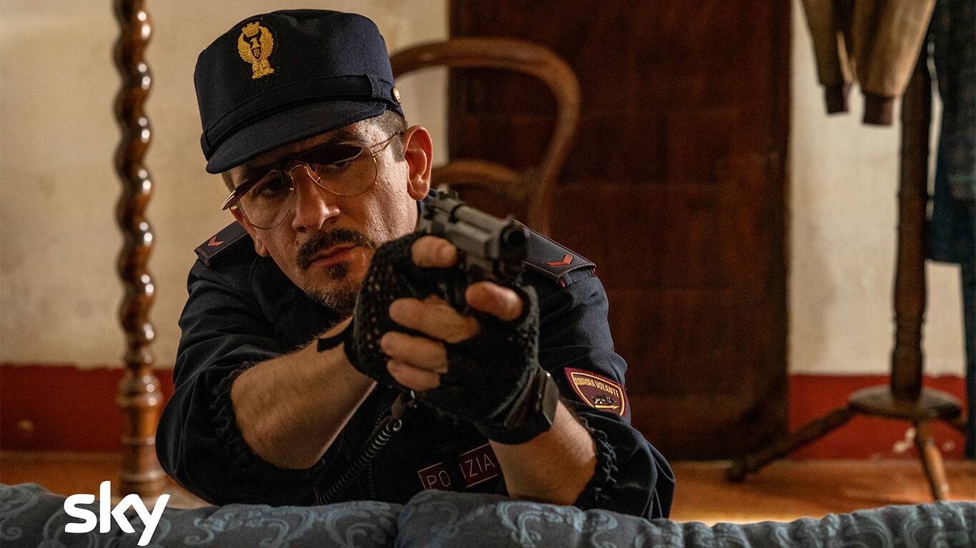“Il cobra non è un serpente”, cantava Donatella Rettore. E non lo è nemmeno l’Anaconda, almeno per quanto riguarda Cops. L’oblungo rettile squamato, infatti, è il soprannome del fratello minore di Zu Tore. Un boss che regna a Perdivita, la città del riso patate e cozze. Nella tradizione dei fratelli coltelli, il criminale brama mettere le proprie mani, insieme con la sua cosca, su Apulia. La trovata brillante è trasfigurare Anaconda in una sorta di alter-ego dello Zingaro di “E lo chiamavano Jeeg Robot”. Quindi spazio alle unghie smaltate, agli anelli, alle sgargianti giacche da smoking. E soprattutto ai disturbi da personalità multipla. Sicché l’aspirante Scarface, tra una citazione dei Sepolcri di Foscolo e una botta di cocaina, parla da solo, litiga con se stesso si contraddice, talvolta con uno spassoso accento del nord-est. Insomma un criminale da strapazzo, ma che, in virtù della sua follia può essere letale quanto il serpente a cui si ispira