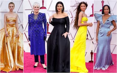 In forma abbreviata e con il distanziamento sociale: è stata una passerella inedita quella dell'edizione 2021 a causa delle restrizioni per la pandemia. Le mascherine non sono previste davanti alle telecamere ma sono solo tre i fotografi ammessi e i movimenti devono seguire rigidi percorsi per rispettare le distanze. La diretta degli Oscar