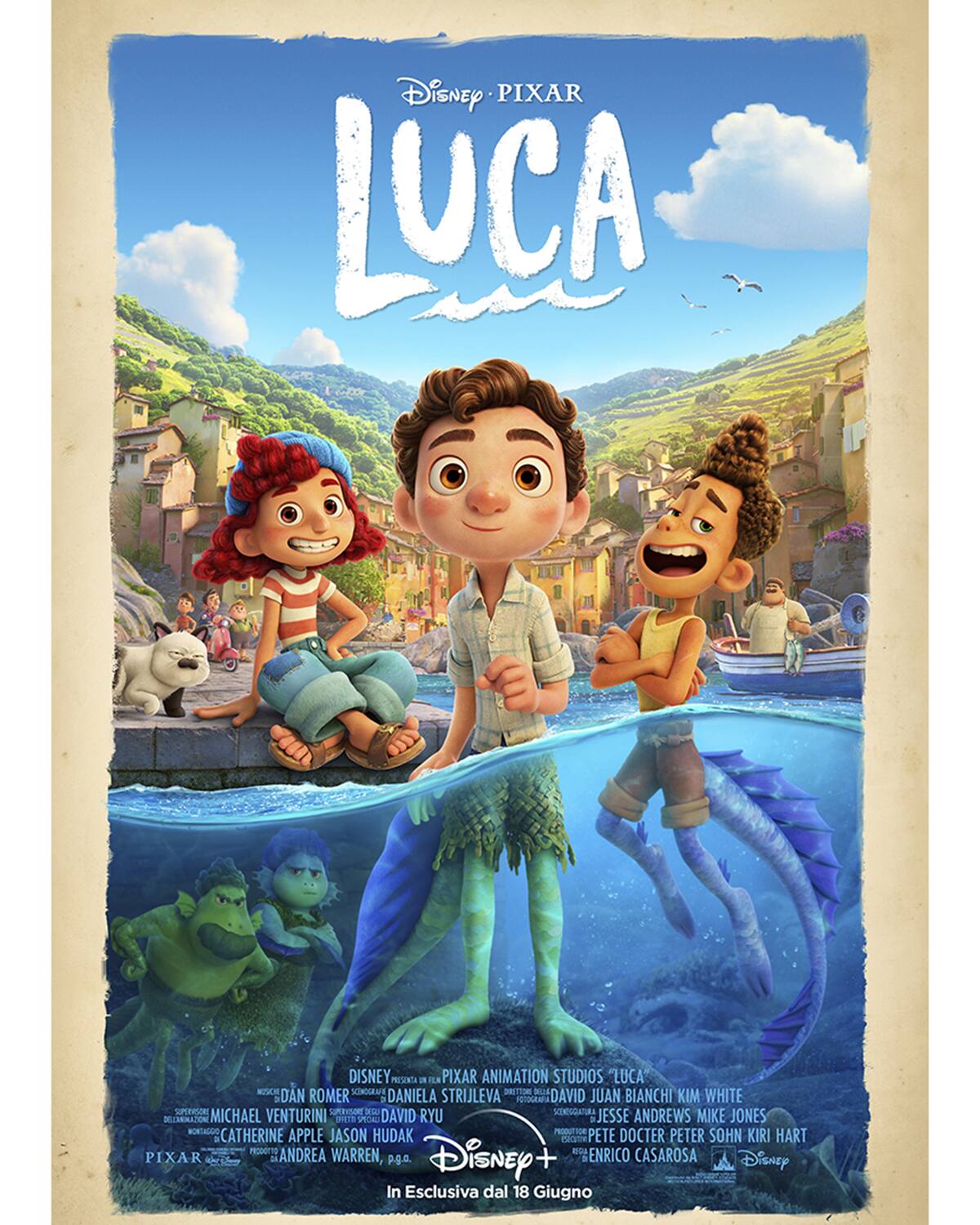 Diretto dal candidato all’Academy Award® Enrico Casarosa (La Luna) e prodotto da Andrea Warren (Lava, Cars 3), il nuovo lungometraggio d’animazione Disney e Pixar Luca sarà disponibile in streaming in esclusiva su Disney+ dal 18 giugno per tutti gli abbonati. Il film racconta di un’incredibile estate nella città di mare italiana Portorosso, vista attraverso gli occhi di un mostro marino di nome Luca.