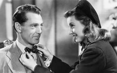 Coop, come veniva soprannominato l'attore, lavora ancora la fianco di Barbara Stanwyck in Colpo di fulmine, pellicola di Howard Hawks del 1941 in cui la "pupa" di un gangster si rifugia da un gruppo di otto professori che vivono per conto proprio mentre sono intenti nella stesura di un'imponente enciclopedia (©RKO)