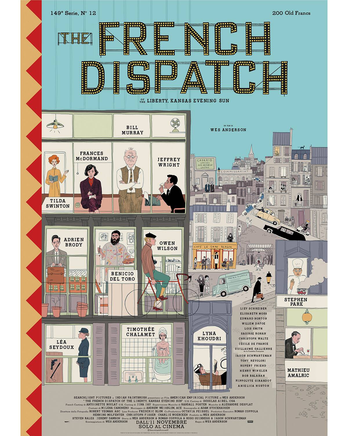 Dalla mente geniale del nominato all'Oscar, Wes Anderson, The French Dispatch è incentrato su una raccolta di articoli tratti dal numero finale di una rivista americana pubblicata in una città francese immaginaria del Ventesimo secolo. Il film, che sarà presentato, il 12 luglio in anteprima mondiale in concorso alla 74esima edizione del Festival di Cannes, arriverà l' 11 novembre nei cinema italiani