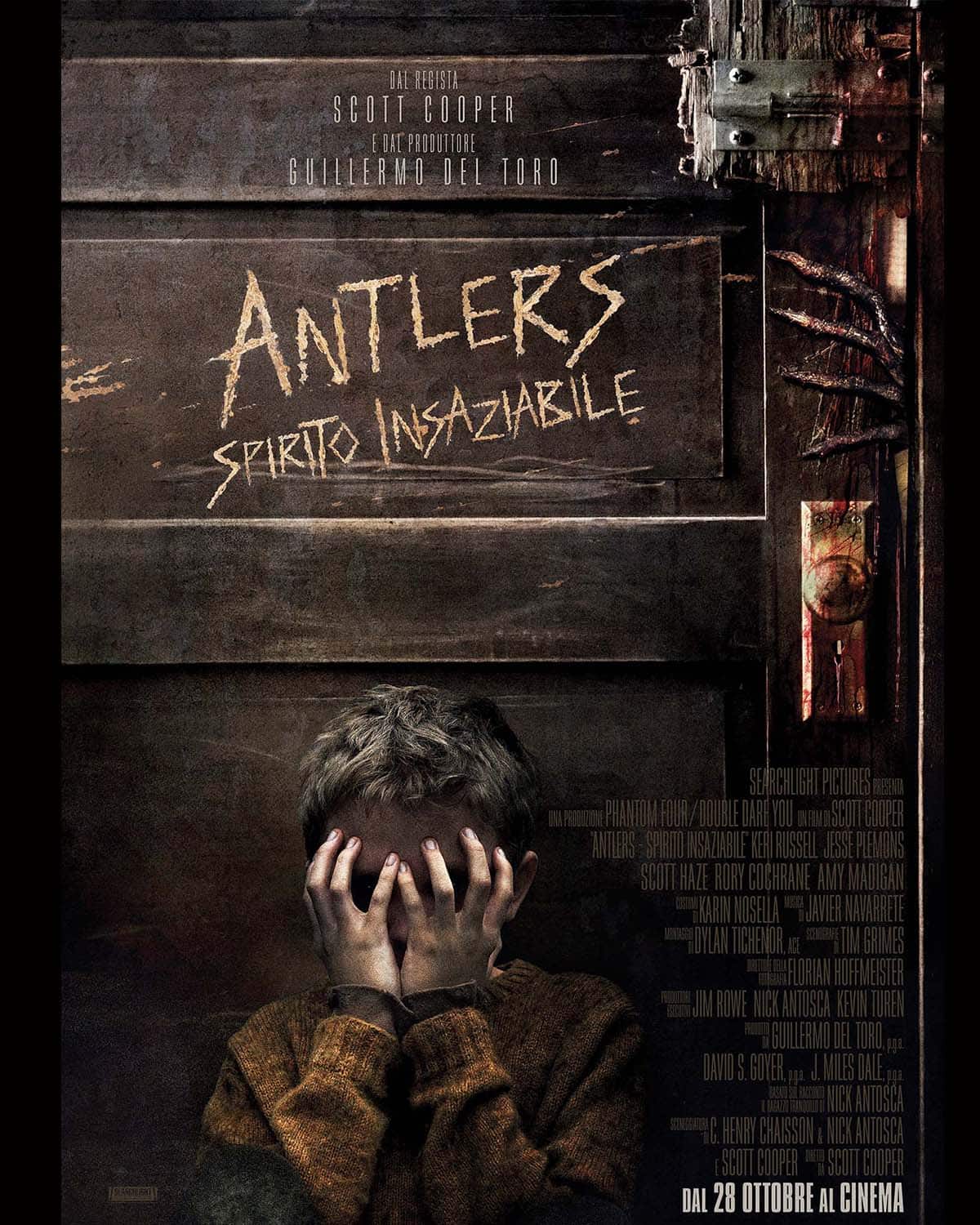 Antlers-Spirito Insaziabile è tratto dal racconto “The Quiet Boy” di Nick Antosca. La ssceneggiatura è firmata dallo stesso Antosca, insieme a C. Henry Chaisson e Scott Cooper, anche regista della pellicola. Il film è prodotto da Guillermo del Toro, David S. Goyer e J. Miles Dale.