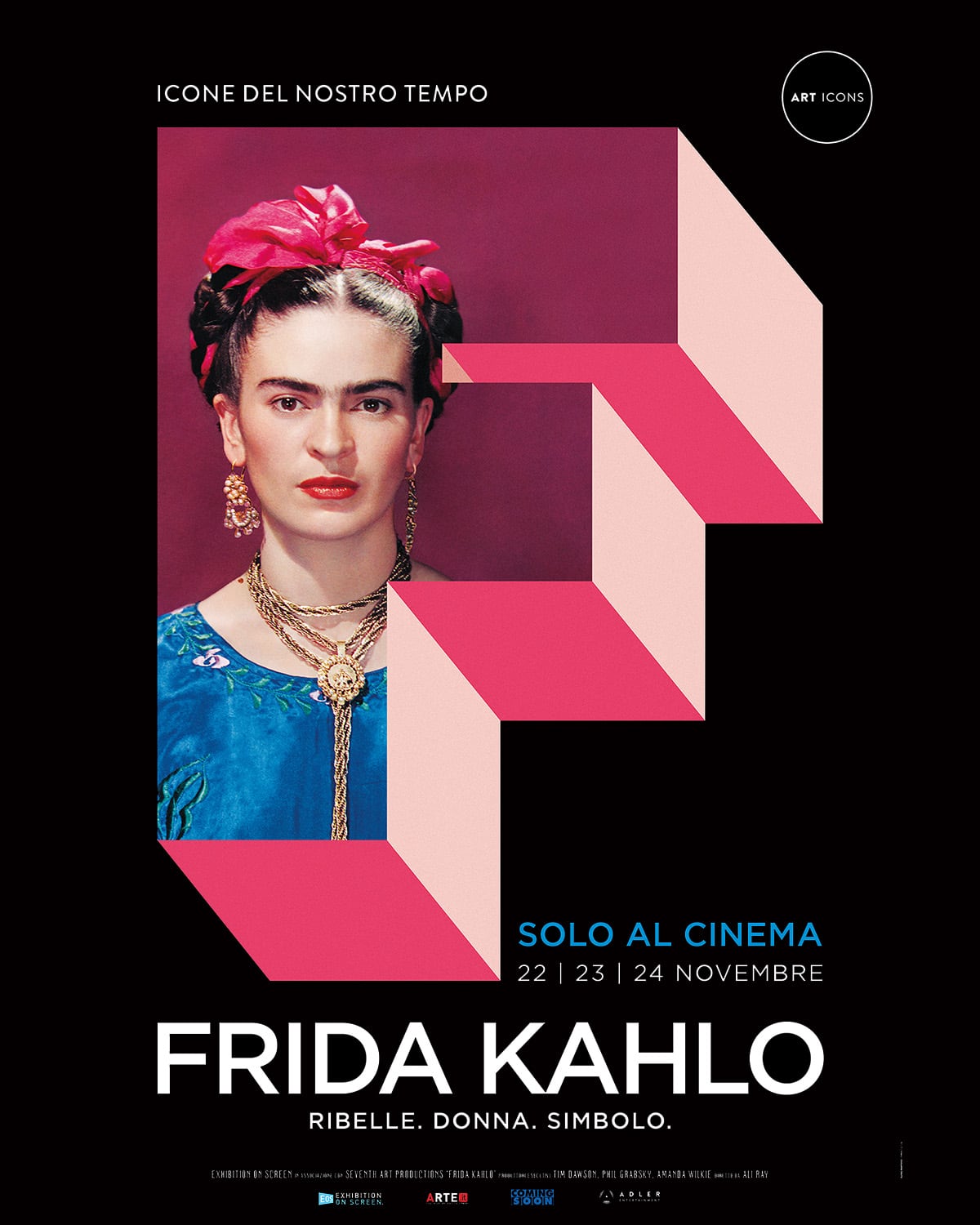 Frida Kahlo è il primo appuntamento al cinema della nuova collana ART ICONS, una serie di film documentari sulle icone indiscusse del mondo dell’arte, che grazie ad Adler Entertainment arriveranno sul grande schermo con tre imperdibili film evento con protagoniste altrettante personalità illustri del panorama artistico: tre autentiche icone pop del mondo dell’arte che hanno fatto la Storia, amate e conosciute in tutto il mondo.