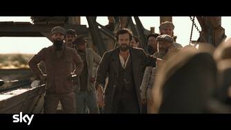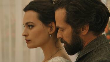 Una scena del film Eiffel di Martin Bourboulon con Romain Duris e Emma Mackey e Pierre Deladonchamps