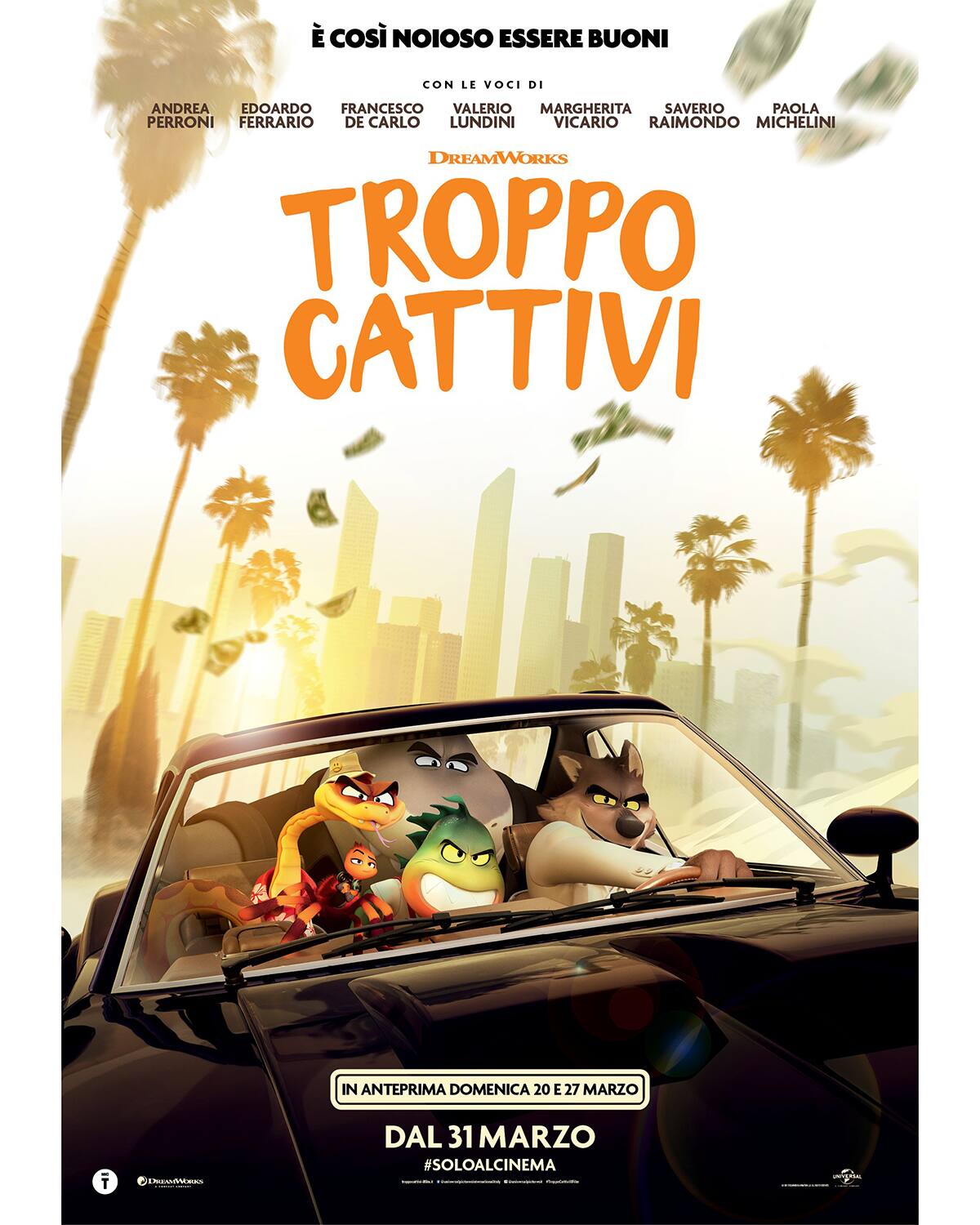 Troppo cattivi, la commedia d'azione della DreamWorks Animation, basata sulla serie di libri più venduti del New York Times arriverà al cinema dal 31 marzo. I protagonisti sono una banda criminale di animali che sta per tentare la sua truffa più impegnativa: diventare cittadini modello.