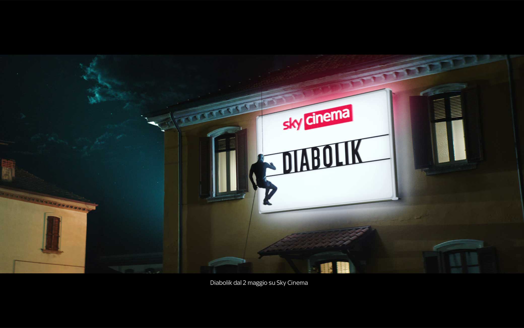 La scena si svolge nel quartiere della famiglia Sky, nella realtà il suggestivo borgo di Crespi D’Adda. Pierfrancesco Favino, elegantissimo in smoking, si muove tra le vie a passo svelto. La famiglia Sky aspetta impaziente in giardino, il papà controlla l’orologio, i figli si guardano intorno. Vedono Diabolik che si cala dal tetto di una casa vicina e aggiunge la lettera D alla grande lightbox su cui campeggia il suo nome, per annunciare l’arrivo del film omonimo, thriller dei Manetti Bros con Luca Marinelli, Miriam Leone e Valerio Mastandrea, dal 2 maggio su Sky Cinema. Sulla strada accanto sfreccia Ecto-1 e passa davanti a un’altra casa, con la lightbox di Ghostbusters: Legacy, di Jason Reitman, su Sky Cinema dal 16 maggio, terzo capitolo di una saga cult, con un team di giovani star affiancate da Bill Murray, Dan Aykroyd e Sigourney Weaver.