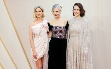 Anche Michelle Dockery ha scelto un look indimenticabile per questa serata speciale, un abito con cappa Maison Valentino completamente ricamato con cristalli scintillanti