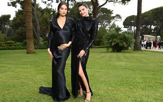 In abito scuro ma luminosissimo, le supermodelle Shanina Shaik e Sara Sampaio scelgono raso e cristalli. La prima, incinta, ha optato per un elegantissimo modello vintage Alexander McQueen