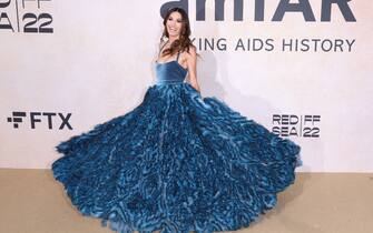 C'è anche Elisabetta Gregoraci nel parterre degli ospiti dell'amfAR 2022. Il suo abito Luisa Beccaria color pavone le regala un ingresso davvero scenografico