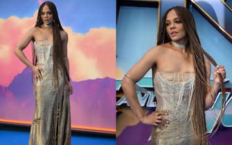 Tessa Thompson è arrivata alla premiere con un prezioso abito dorato Oscar de la Renta