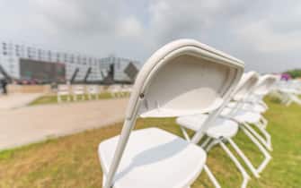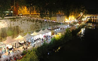 L'Arena dell'Isola del Cinema a Roma. Spettacolare cinema all'aperto sull'Isola Tiberina, situata a bordo fiume, vicino alla Sinagoga, ai piedi del Ponte Fabricio