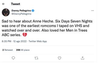 L'autore e produttore Danny Pellegrino si è detto "triste di sapere" di Heche. "Six Days Seven Nights è stata una delle prime commedie romantiche che ho registrato su VHS e che ho guardato più e più volte", ha scritto su Twitter