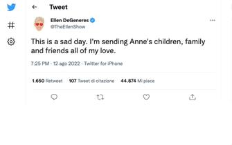 Proprio l'ex compagna Ellen DeGeneres ha scritto su Twitter: "È un triste giorno. Mando ai figli, agli amici e alla famiglia di Anne tutto il mio amore". Le due hanno avuto una relazione che fece scandalo all'epoca, iniziata nel 1997