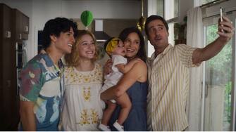 Danny Ramirez (Gabe), Lili Reinhart (Natalie), Andrea Savage (Tina) e Luke Wilson (Rick) in uno scatto del film Linee Parallele