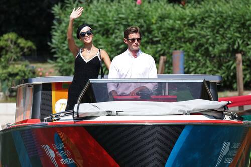 L’attrice e modella spagnola è arrivata in motoscafo all’imbarcadero dell’Hotel Excelsior