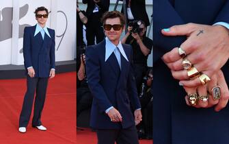 Come era facile prevedere, Harry Styles è arrivato in completo Gucci. Il look, realizzato dall'amico stilista Alessandro Michele, consiste in un completo blu navy con camicia chiara con colletto dal sapore retrò. Anche per l'occasione la popstar non ha rinunciato ad accessori che raccontano la sua personalità e il suo stile eclettico. Voto 8