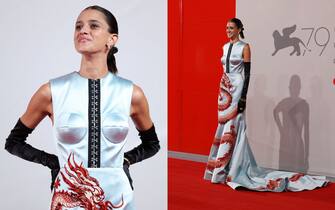 Anche Benedetta Porcaroli fa parte della Gucci family e per la sua apparizione sul red carpet del film Amanda ha sfoggiato una creazione realizzata per lei dal brand. Bustier, guanti lunghi di stampo fetish e dragoni sono tutti parte dell'estetica del marchio diretto da Alessandro Michele, molto amico della giovane star romana. Voto 8