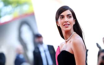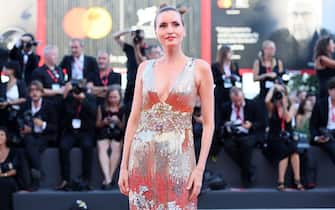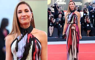 La madrina della Mostra del Cinema di Venezia 2022 Rocio Muñoz Morales è la prima a raggiungere i fotografi sul red carpet per la serata che chiude la prestigiosa kermesse