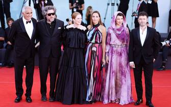 Una foto con una parte dei giurati che hanno più volte calcato il tappeto rosso della Mostra con look sempre coerenti nelle varie serate. Da sinistra: Rodrigo Sorogoyen, Leila Hatami, Audrey Diwan, Julianne Moore, Mariano Cohn and Leonardo Di Costanzo, tutti impeccabili per la gran serata della consegna dei Leoni. Voto complessivo 8