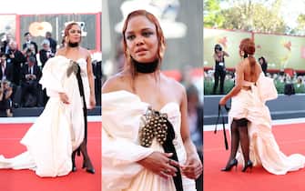 Ultima uscita per Tessa Thompson che certamente è stata una delle donne più originali del Festival grazie alle scelte del team di stylist Wayman and Micah. Per l'ultima sera il suo look prevede un abito voluminoso Schiaparelli, con gonna asimmetrica e design strutturato da ammirare da tutte le angolazioni. Voto 9