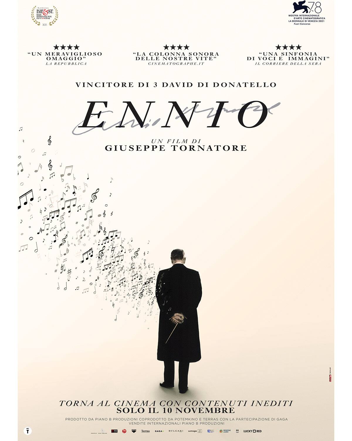 Ennio, il documentario sul Maestro Morricone firmato dal regista Premio Oscar® Giuseppe Tornatore, torna al cinema solo il 10 novembre per celebrare la nascita del musicista più popolare e prolifico del XX secolo, il più amato dal pubblico internazionale, due volte Premio Oscar® e autore di oltre 500 colonne sonore indimenticabili.