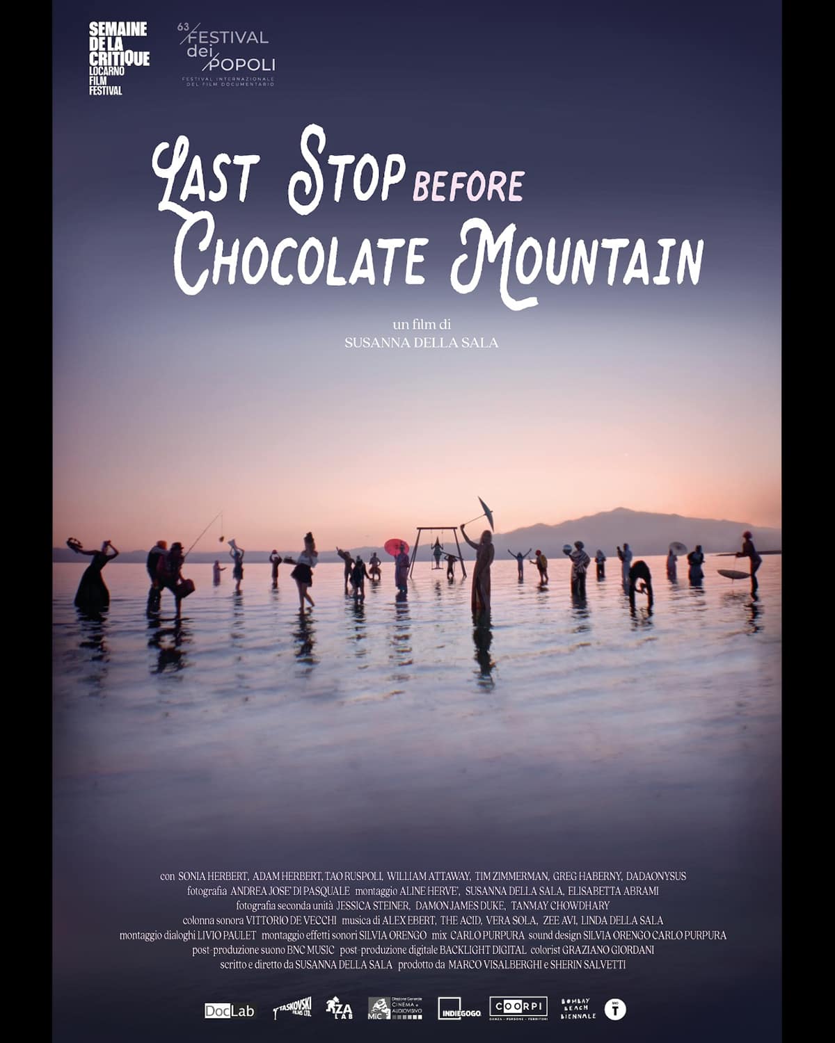 I"l documentario è nato da un’esperienza di vita personale e il suo percorso creativo è stato un lung processo durato quattro anni. Last Stop Before Chocolate Mountain rappresenta per me un luogo universale e metaforico in cui ci mettiamo a confronto con noi stessi, risvegliando il nostro impulso creativo, nel miraggio di una liberazione individuale. Il film racchiude l’anelito collettivo, disperato e gioioso al tempo stesso, verso l’accettazione e il senso di appartenenza."